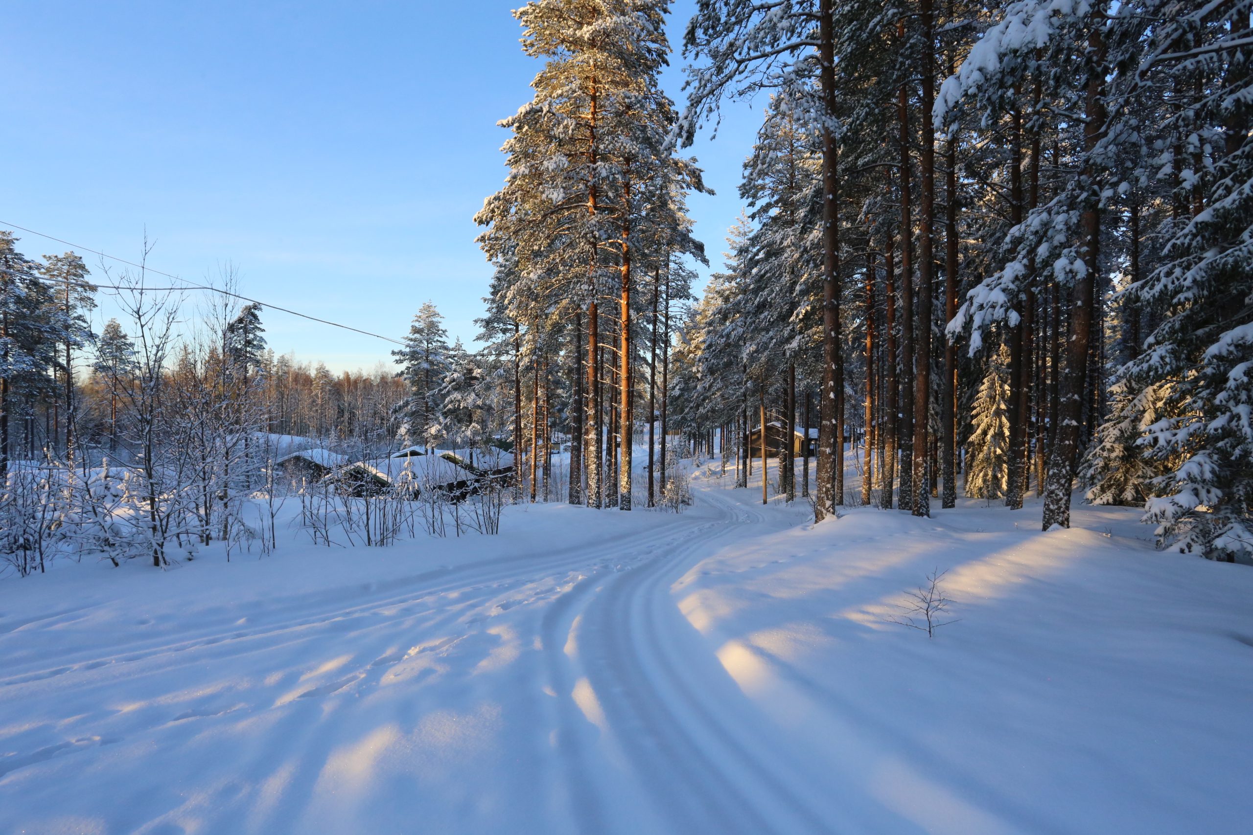 Vi är redo för vintern, så snart snön landar ordentligt drar vi längdspår på vårt eljusspår. Här kan du njuta av längdskidor, skridskor, pulka, prova på snöskor, skridskor, pimpla, vandra och upptäcka spåren där de vilda djuren har gått alldeles vid stugan.